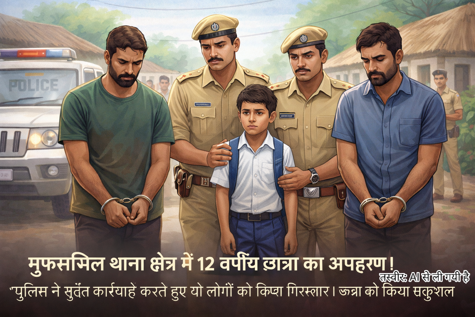 हड़कंप : पुलिस की त्वरित कार्रवाई में मिला, स्कूल पढ़ने गए 12 वर्षीय छात्र का अपहरण, बरामद
