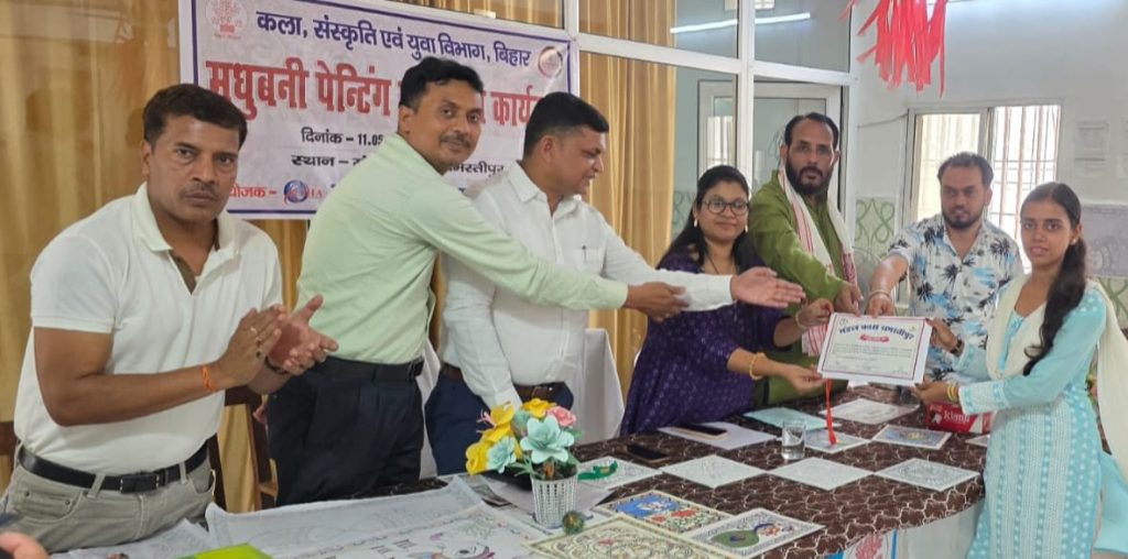 मंडल कारा समस्तीपुर में मधुबनी पेंटिंग प्रशिक्षण के समाप्ति पश्चात प्रमाण पत्र वितरण