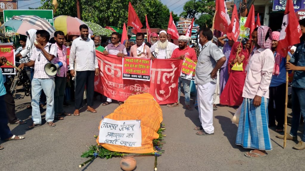 अनशनकारियों की हालत बिगड़ने से आक्रोशित माले कार्यकर्ताओं ने अंचल प्रशासन का निकाला अर्थी जुलूस
