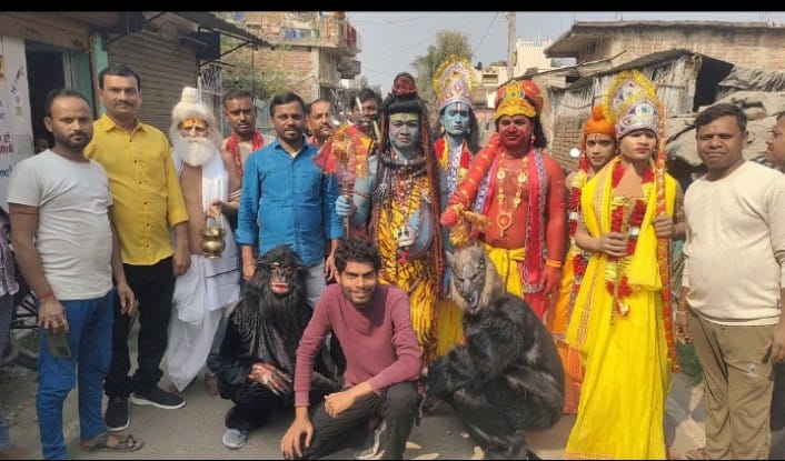 जहां वैदिक मंत्रोच्चार के बीच पूजा अर्चना करने के बाद सहिट वृन्दावन, राजा चौक, बजरंगी चौक, गोपालपुर, मड़वा ढाला आदि गांवों की आंचलिक यात्रा पूरी कर मऊ बाजार स्थित मंदिर परिसर विवाह मंडप में पहुंची।शिव बारात झांकी में संजय गुप्ता ने भगवान भोलेनाथ, बमबम महतो ने विष्णु, रामनरेश साह ने ब्रह्मा, अभय कुमार ने श्रीराम,अंकित ने हनुमान जी व राम बहादुर ने नारद के प्रतिरूपों के चित्रण को उपस्थित जनसमूह ने बखूबी सराहा।