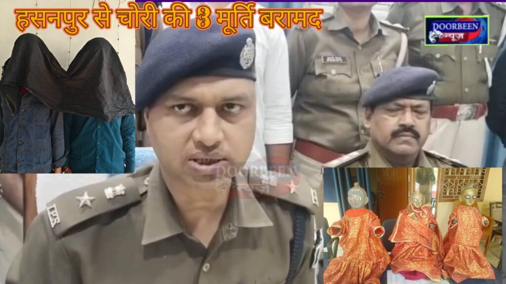 हसनपुर मूर्ति चोरी का हुआ खुलासा, तीन मूर्ति बरामद, दो आरोपियों को किया गिरफ्तार