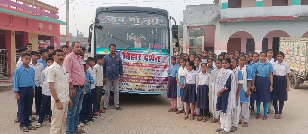 Doorbeen News Desk: शिवाजीनगर प्रखंड अंतर्गत दसौत पंचायत के उत्क्रमित मध्य विद्यालय बंदा कन्या के बच्चे को मंगलवार को मुख्यमंत्री शैक्षणिक परिभ्रमण सह बिहार दर्शन योजना के तहत दरभंगा के विभिन्न ऐतिहासिक, शैक्षणिक एवं धार्मिक स्थलों का भ्रमण कराया गया। इस अवसर पर विद्यालय परिसर से बस को विद्यालय के एचएम शांति भूषण राय ने हरी झंडी दिखाकर रवाना किया। परिभ्रमण को लेकर छात्रों में सुबह से ही काफी उत्साह देखा गया। विद्यालय से रवाना होने के बाद छात्र छात्राओं को दरभंगा के कई महत्वपूर्ण स्थलों का भ्रमण कराया गया।