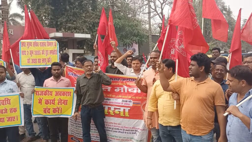 जबकि राजस्व कर्मचारियों की योग्यता स्नातक निर्धारित की गई है और ग्रेड पे 2800 होनी चाहिए। लेकिन 8 महीने बीत जाने के बाद भी सरकार ने इस पर आदेश निर्गत नहीं किया। जिसके कारण 11 फरवरी से हड़ताल है। उसी के कारण आज समाहरणालय पर राजस्व कर्मचारियों ने प्रदर्शन किया है। उन्होंने बताया कि सीएम के नाम मांग पत्र डीएम को सोपा गया है, जब तक उनकी मांग पूरी नहीं की जाती, हड़ताल जारी रहेगा। इस दौरान कर्मचारी महासंघ के पूर्व अध्यक्ष लक्ष्मीकांत झा, जिला मंत्री राजीव रंजन, जिला मंत्री रामकुमार झा, वीरेंद्र कुमार सिन्हा, मंत्री महेंद्र प्रसाद सहित कर्मचारी थे।