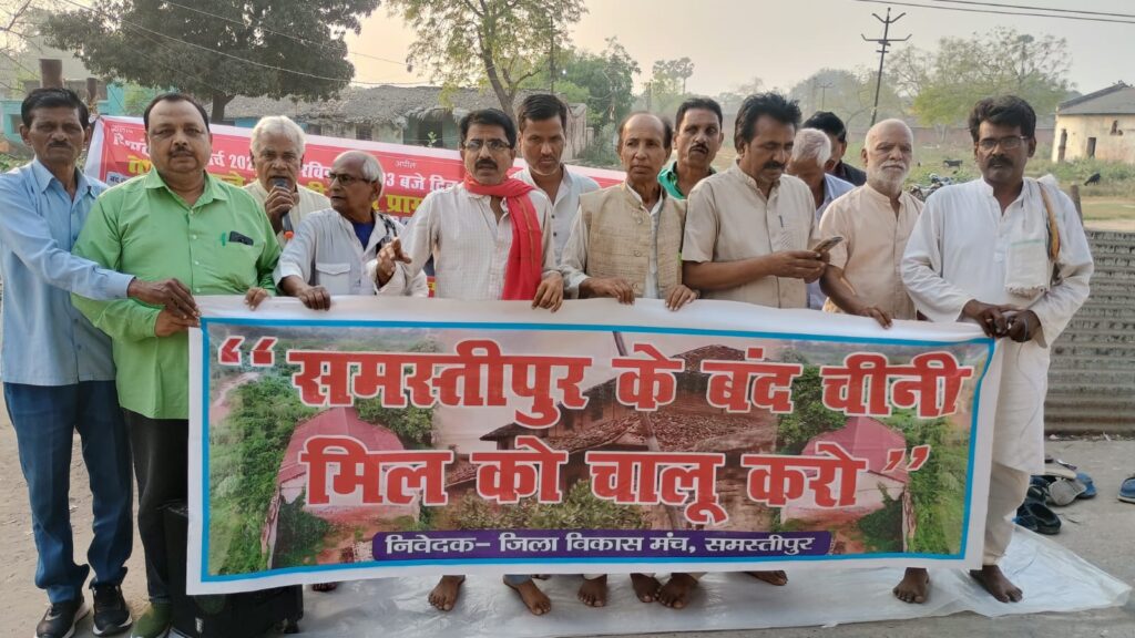 समस्तीपुर में बंद चीनी मिल चालू करने की मांग को लेकर जुलूस निकालकर सभा किया