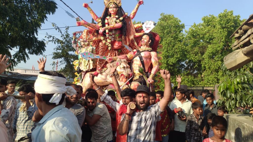 मां की विदाई के दौरान वातावरण भावुक हो गया। श्रद्धालुओं की आंखें नम थीं और वे मां दुर्गा से परिवार एवं क्षेत्र की सुख-समृद्धि की कामना कर रहे थे। कई श्रद्धालु “अगले बरस तू जल्दी आ” के जयघोष के साथ मां को विदा कर रहे थे। शांतिपूर्ण और सुव्यवस्थित तरीके से प्रतिमा का विसर्जन संपन्न हुआ। इस आयोजन ने पूरे क्षेत्र में धार्मिक एकता और आस्था की भावना को और मजबूत किया।