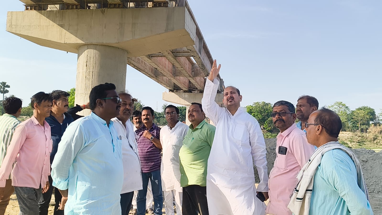 हकीमाबाद पंचायत में बूढ़ी गंडक नदी के राज घाट पर निर्माणाधीन पुल का लिया जायजा