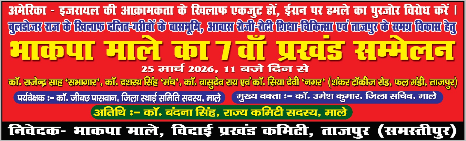 तैयारी जोरों पर, भाकपा माले का प्रखंड सम्मेलन 25 मार्च को- सुरेंद्र
