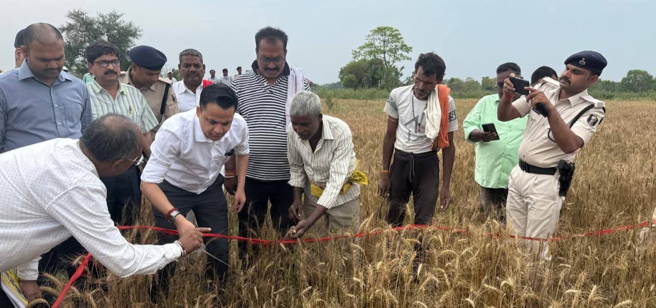 DM ने जिले के किसान की खेत मे पहुँचकर गेंहू की फसल कटनी प्रयोग का किया निरीक्षण